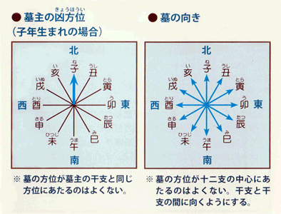 墓主の干支と同じ方角に墓の向きを取ってはいけないということだ。